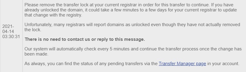 I have been well informed during the whole transfer process. For example, it is an important detail that the bot says that the retry time is once every 5 minutes.